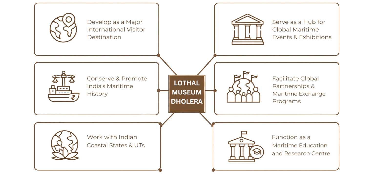 • It is with this vision of our Honorable Prime Minister that the MoPSW (Ministry of Ports, Shipping and Waterways) has undertaken the solemn task of establishing India’s National Maritime Heritage Complex (NMHC) in Lothal, Gujarat.